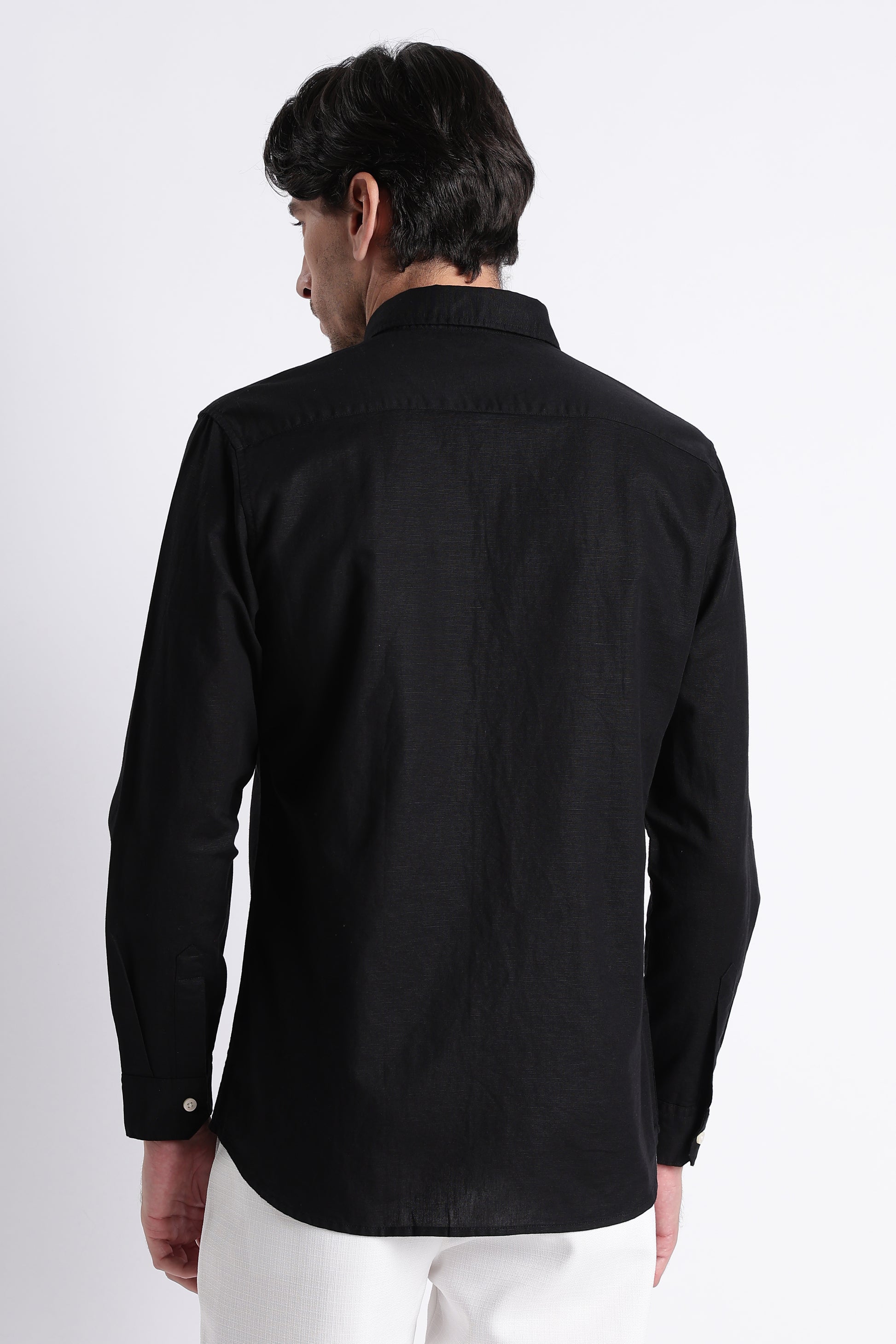 Premium Cotton Linen Slim Fit Solid Shirt Black