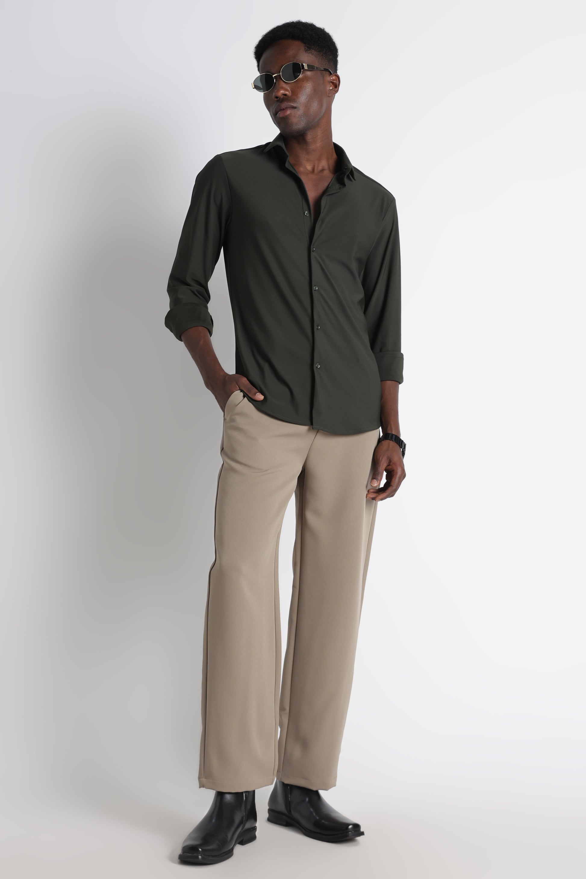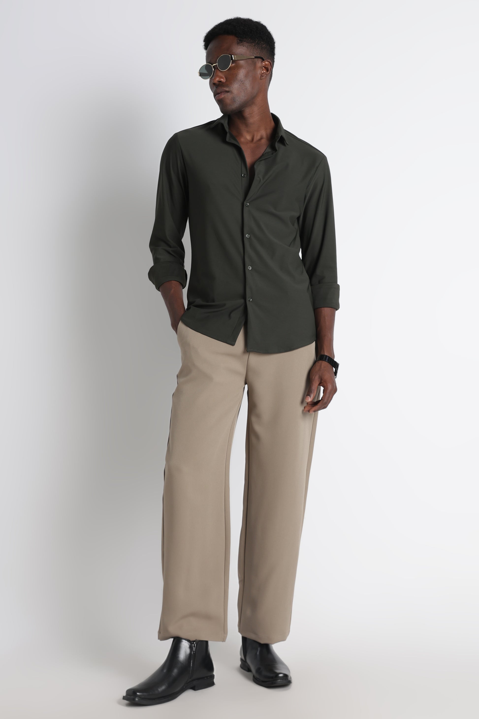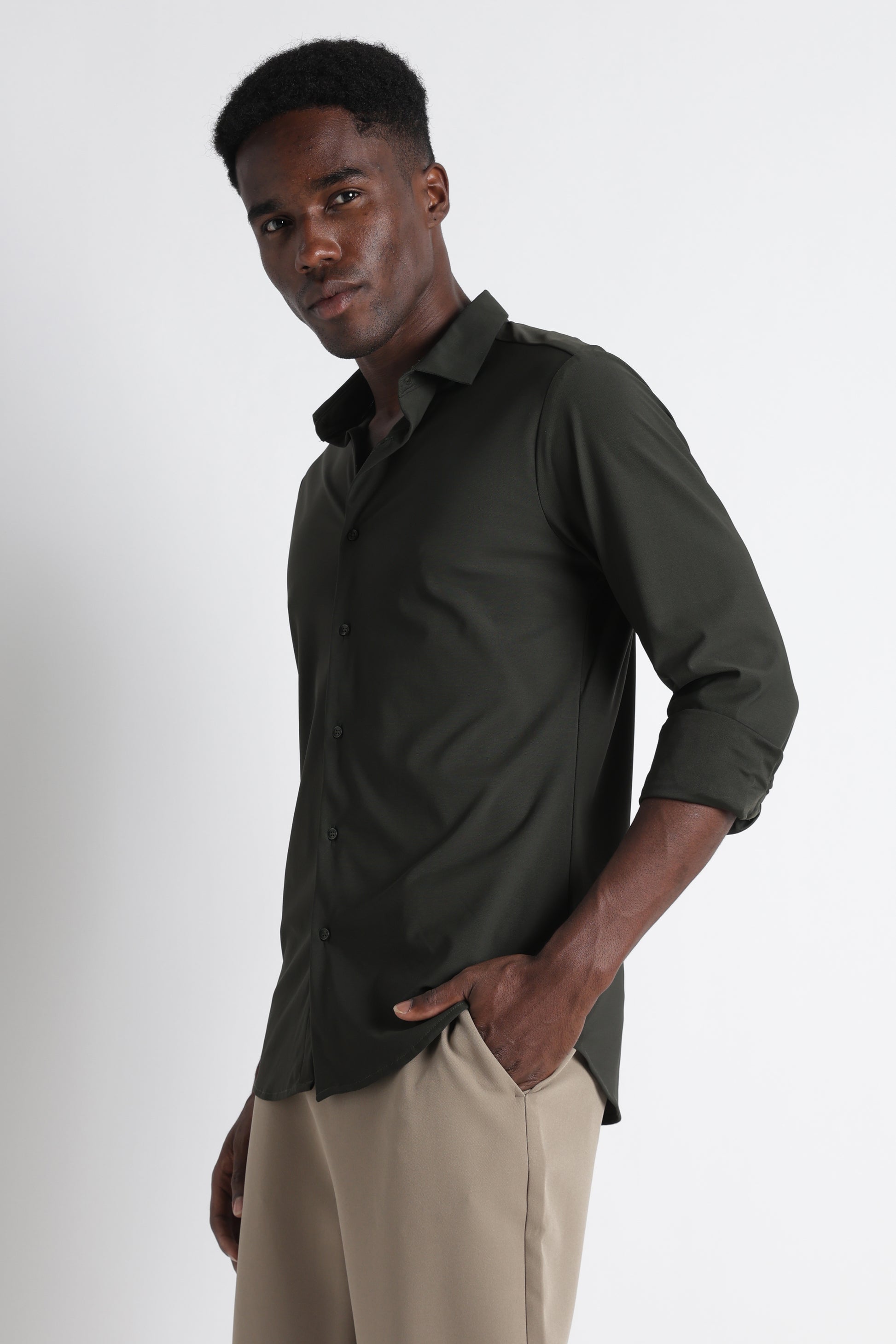 Designed with a slim fit, the shirt sits close to the body without feeling restrictive, making it ideal for long wear. The smooth, pocket-free front keeps the design minimal and elevated, while full sleeves and a refined spread collar add versatility—easy to dress up or down.