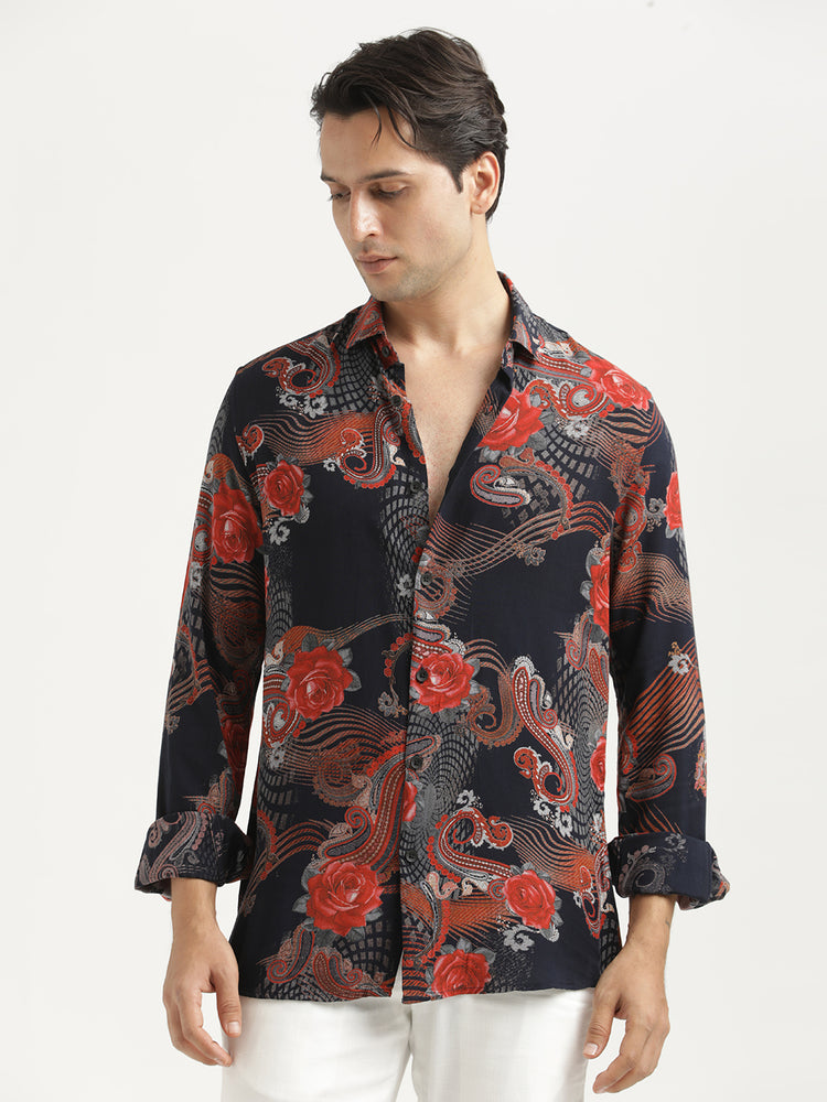 Printed Viscose Shirt Navy