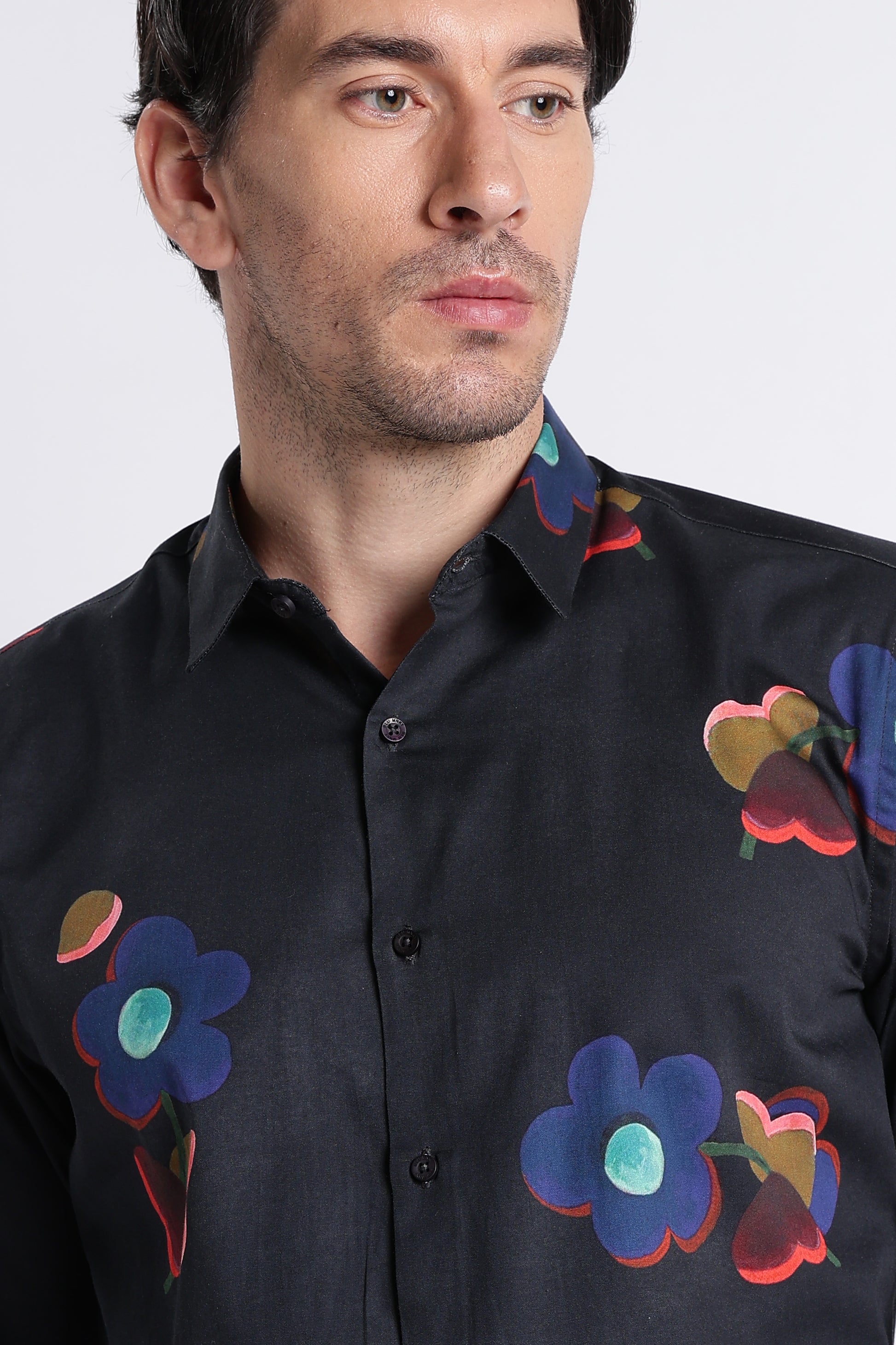 Designed in a sharp slim fit silhouette, it features a classic spread collar, full sleeves, and a clean no-pocket front to let the intricate paisley-inspired floral print take center stage. The digital print detailing adds depth and clarity, ensuring the pattern remains crisp and sophisticated rather than loud.