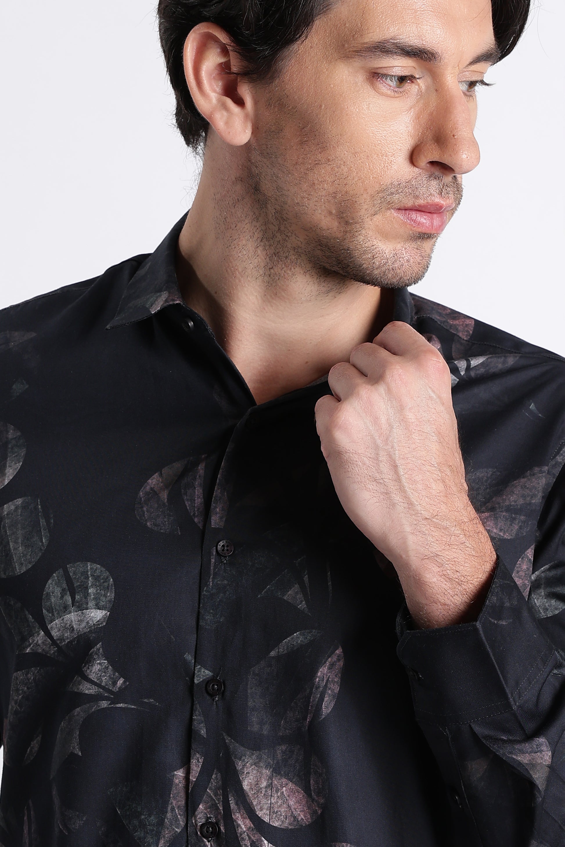 Make a statement without raising your voice. This slim fit printed shirt is crafted from premium cotton satin with digital print, giving it a smooth hand feel with a subtle sheen that elevates the overall look. The fabric drapes cleanly on the body while maintaining structure, making it ideal for refined casual styling.
