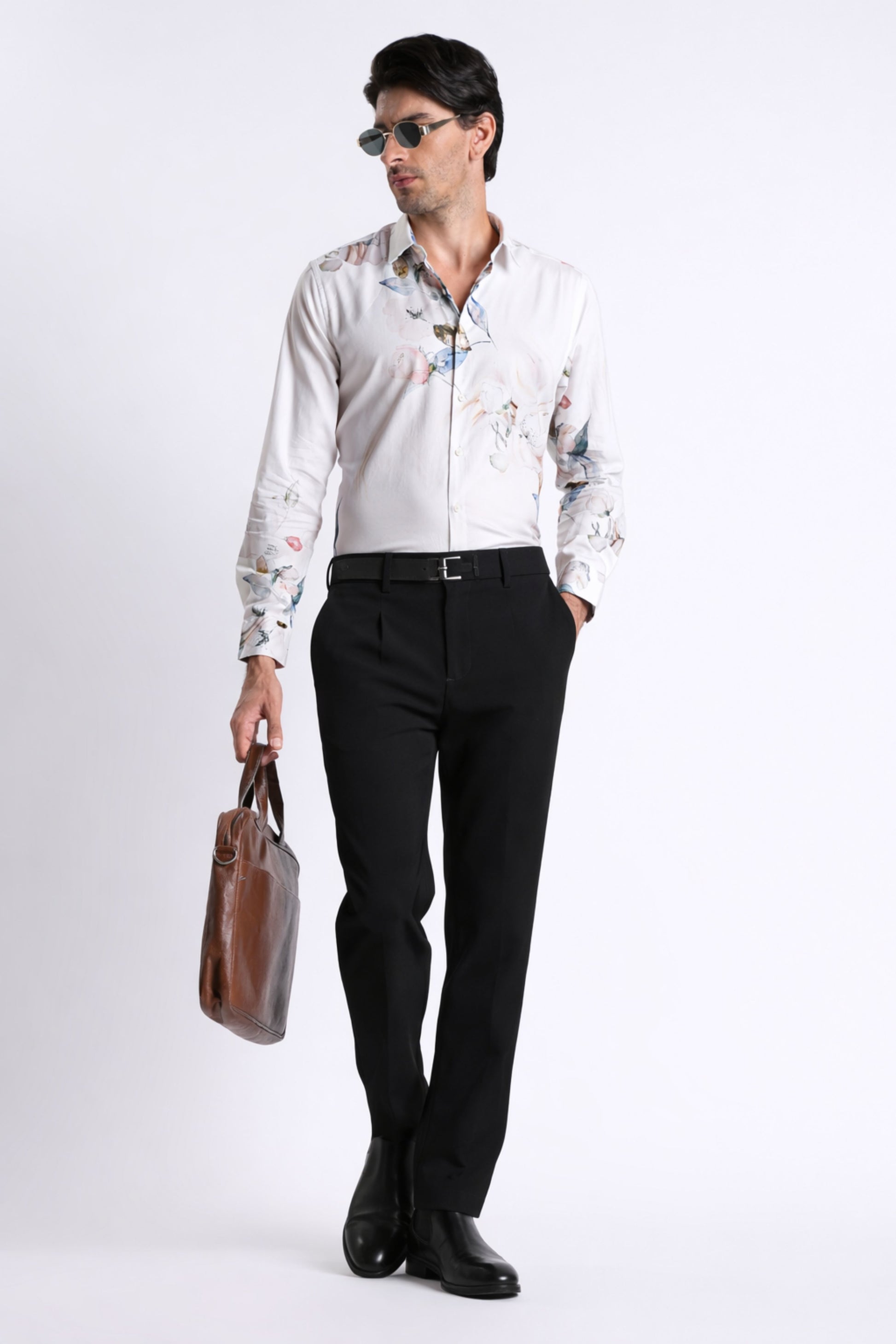 Designed in a sharp slim fit silhouette, it features a classic spread collar, full sleeves, and a clean no-pocket front to let the intricate paisley-inspired floral print take center stage. The digital print detailing adds depth and clarity, ensuring the pattern remains crisp and sophisticated rather than loud.