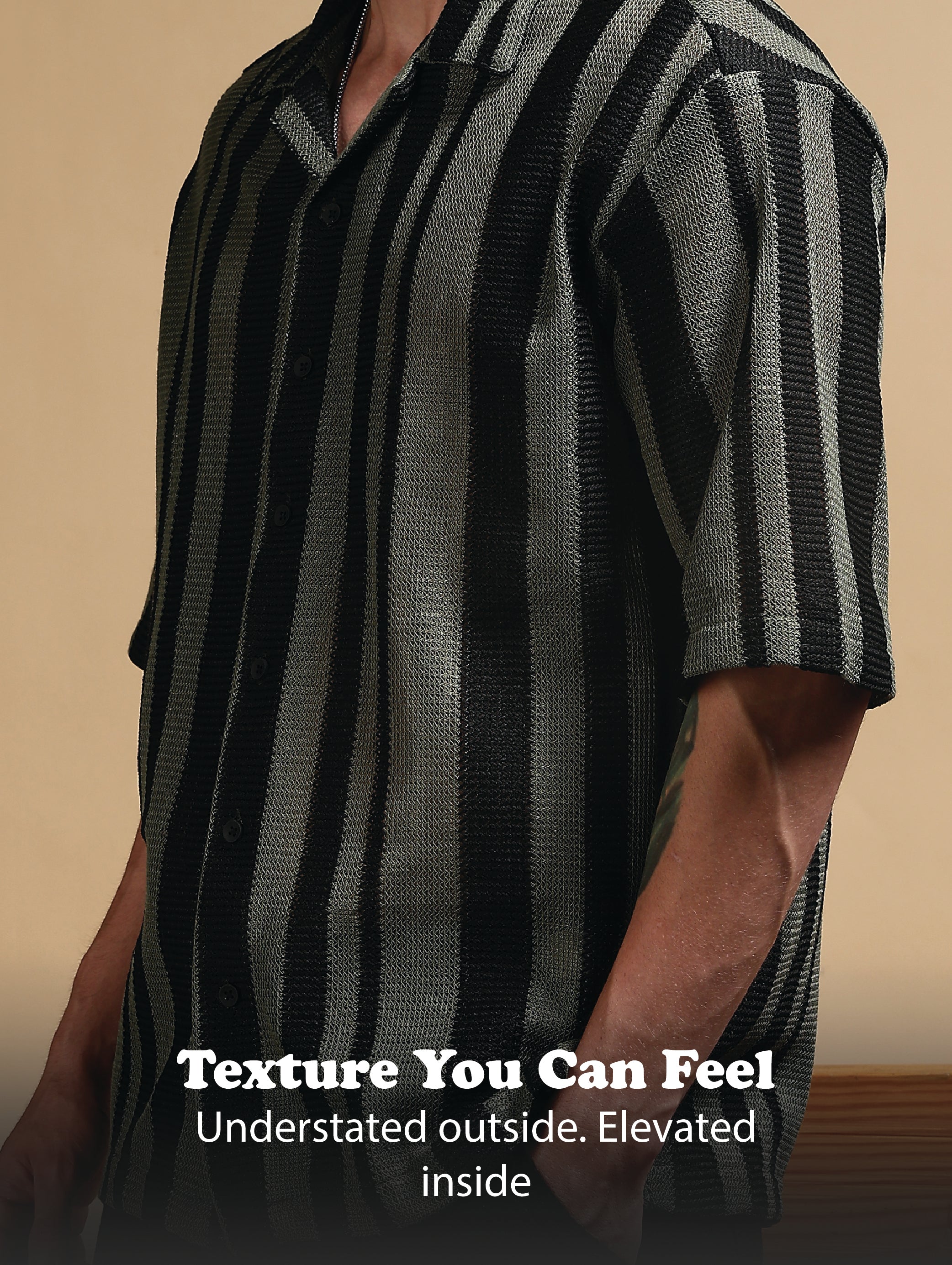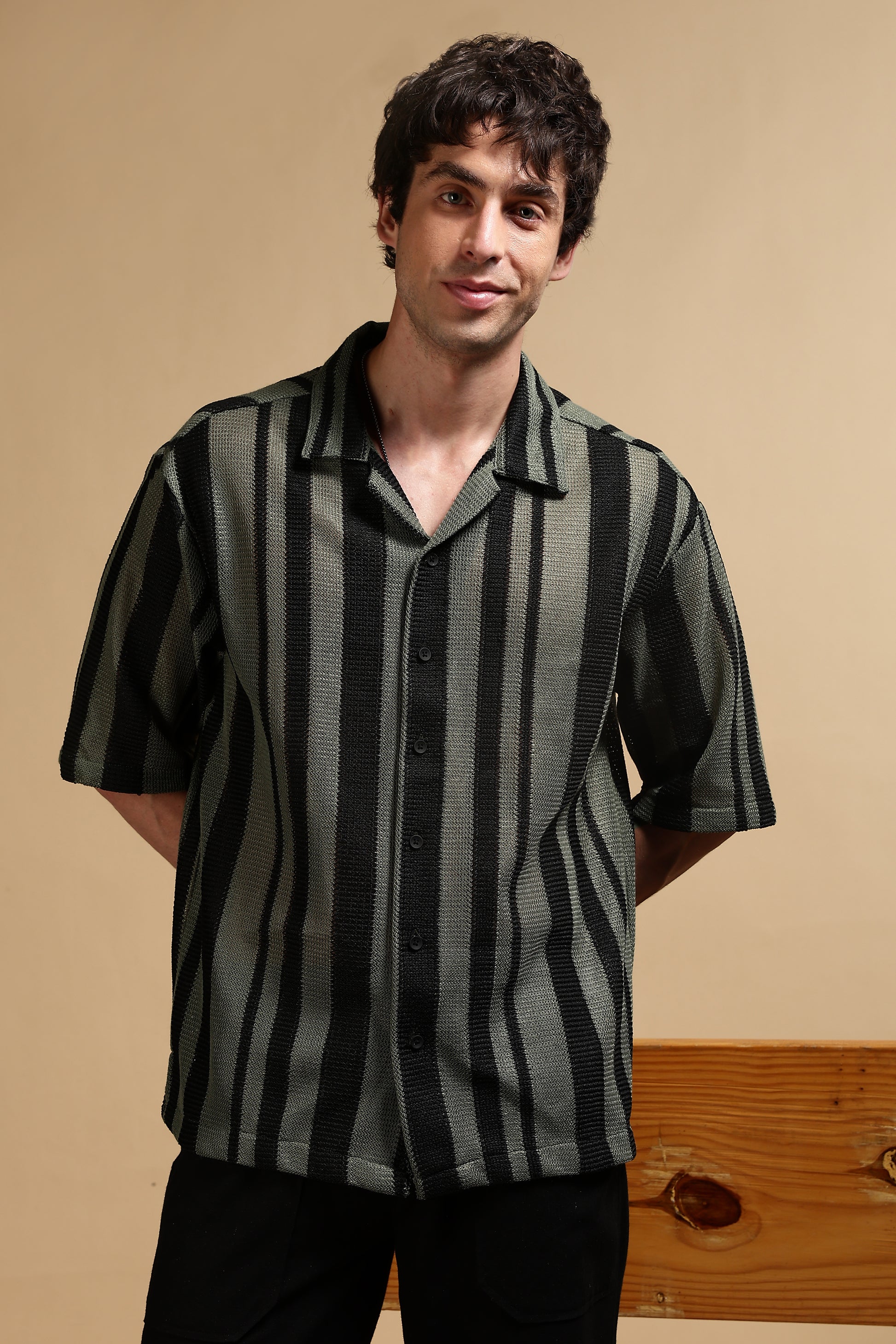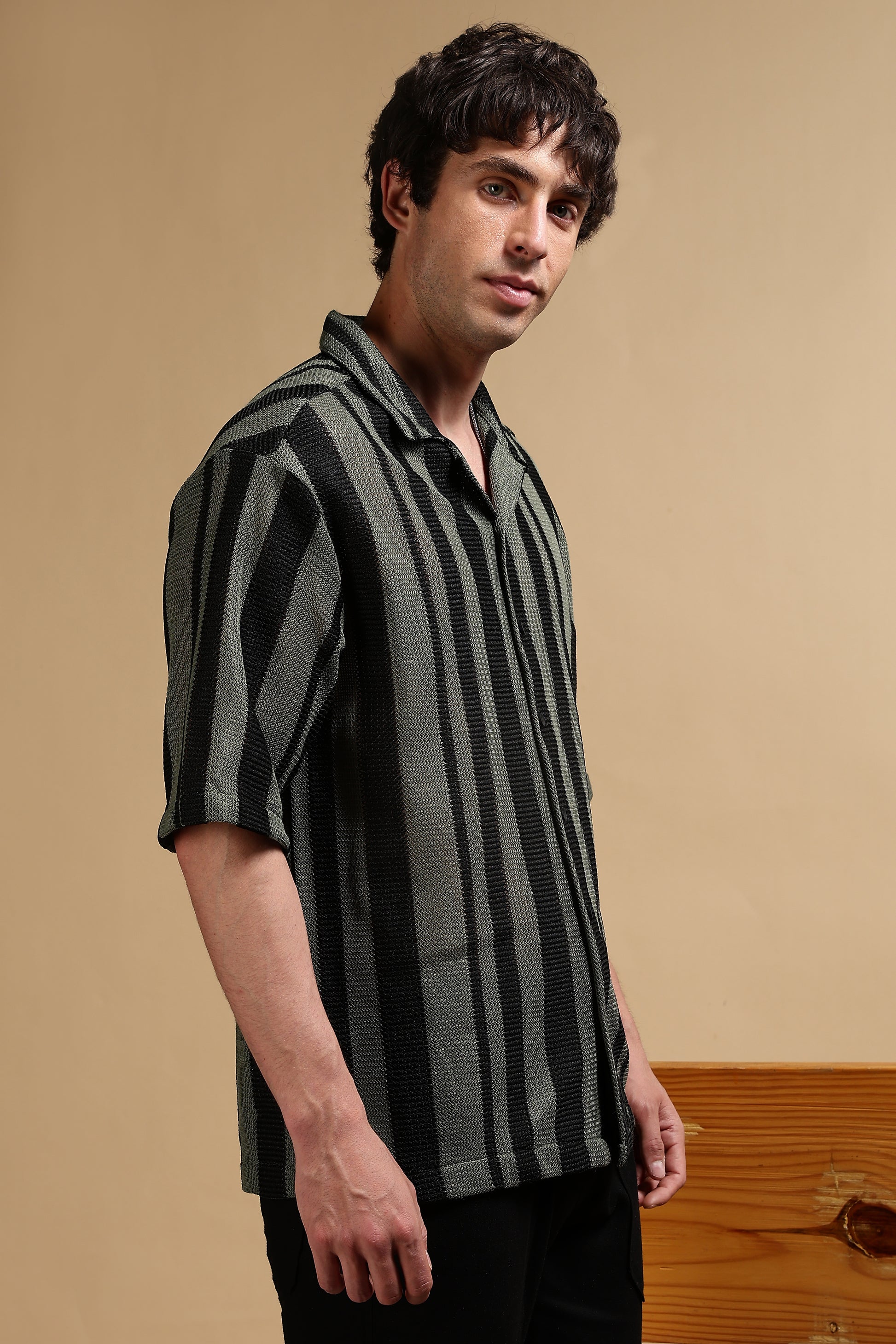 Refresh your casual wardrobe with this striped shirt, crafted in a lightweight polyester fabric for breathability and everyday comfort. Designed with a relaxed fit, this half-sleeve shirt drapes effortlessly for an easygoing vibe. The bold vertical stripes add a touch of modern edge, making it a versatile pick for both day outings and evening plans.