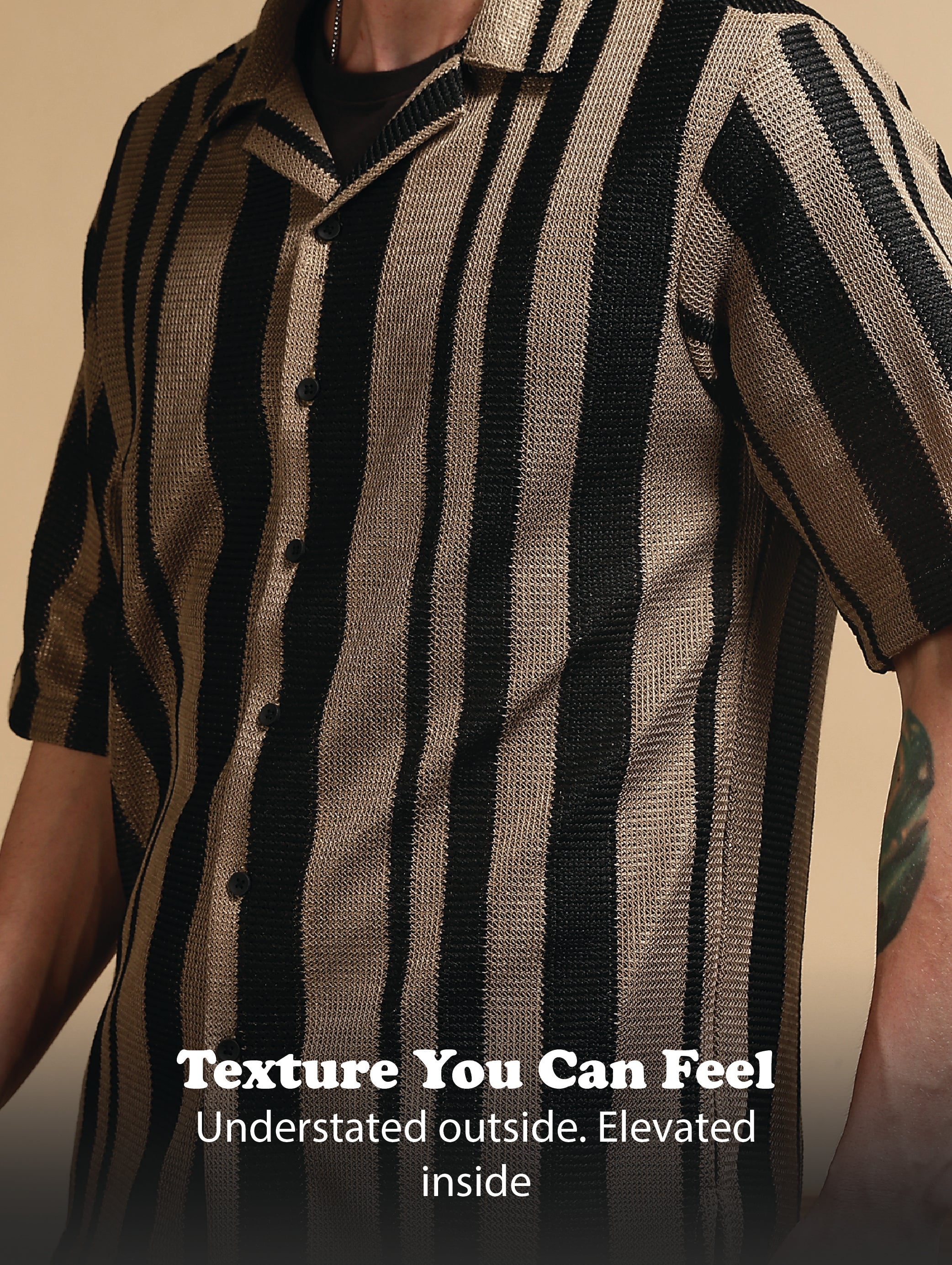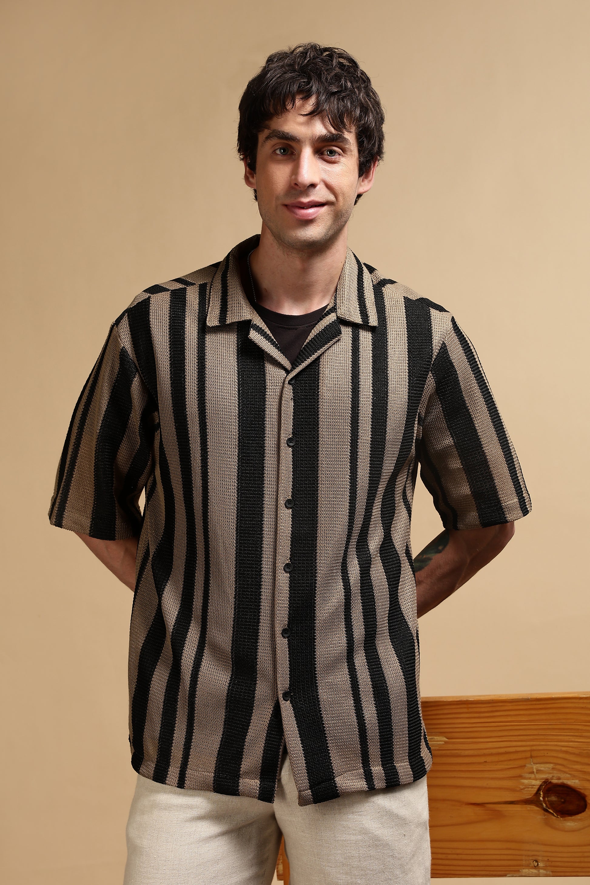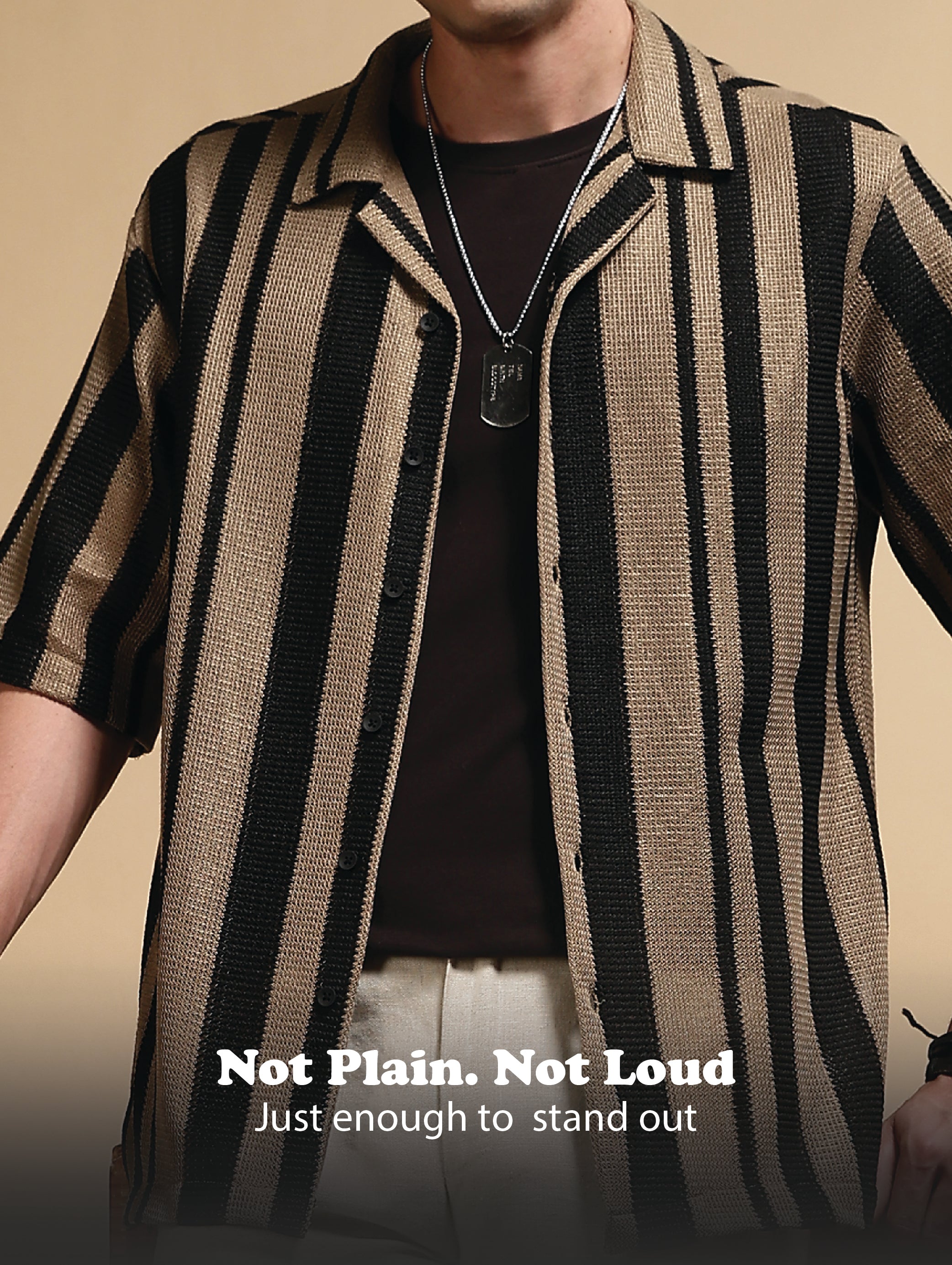 Refresh your casual wardrobe with this striped shirt, crafted in a lightweight polyester fabric for breathability and everyday comfort. Designed with a relaxed fit, this half-sleeve shirt drapes effortlessly for an easygoing vibe. The bold vertical stripes add a touch of modern edge, making it a versatile pick for both day outings and evening plans.