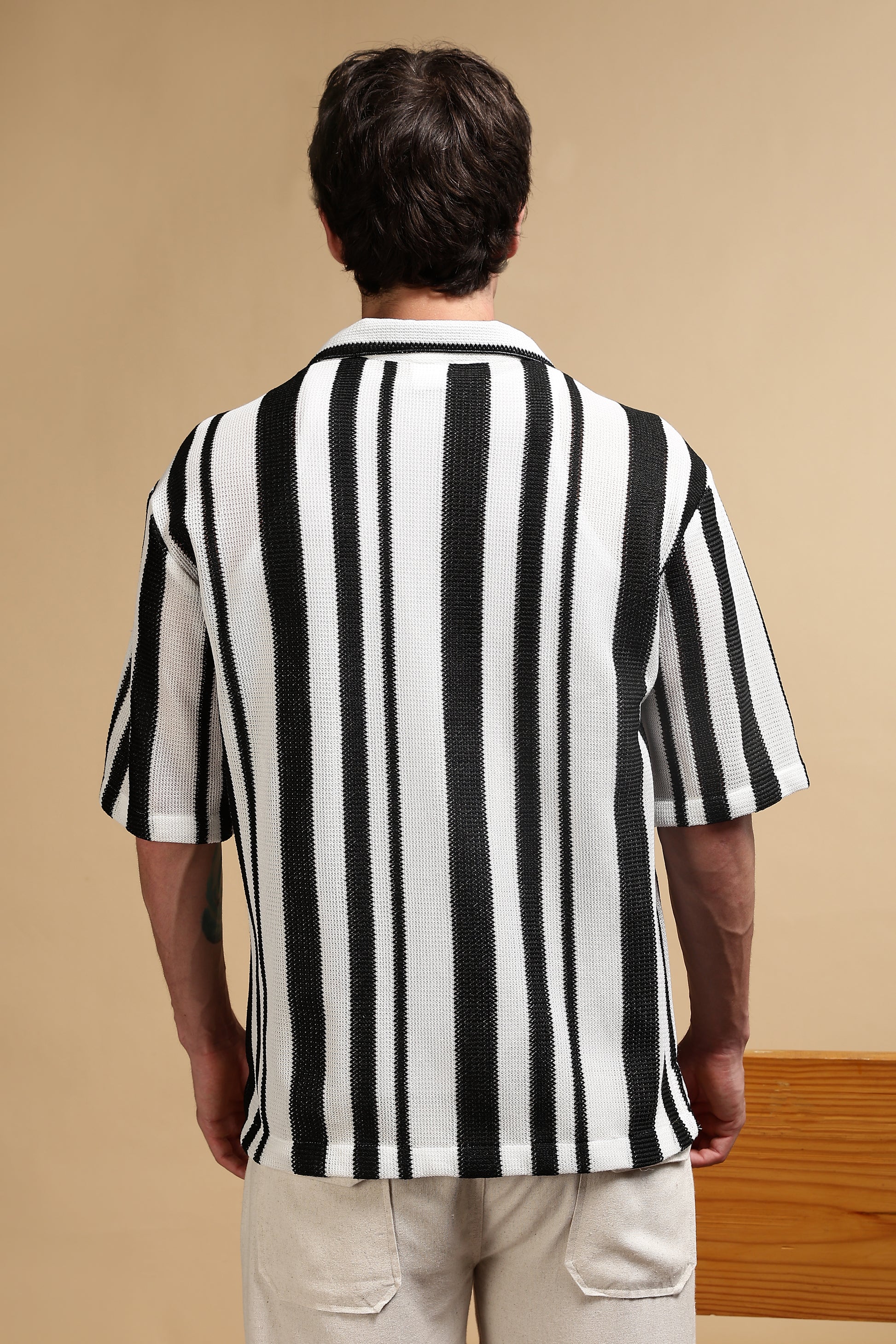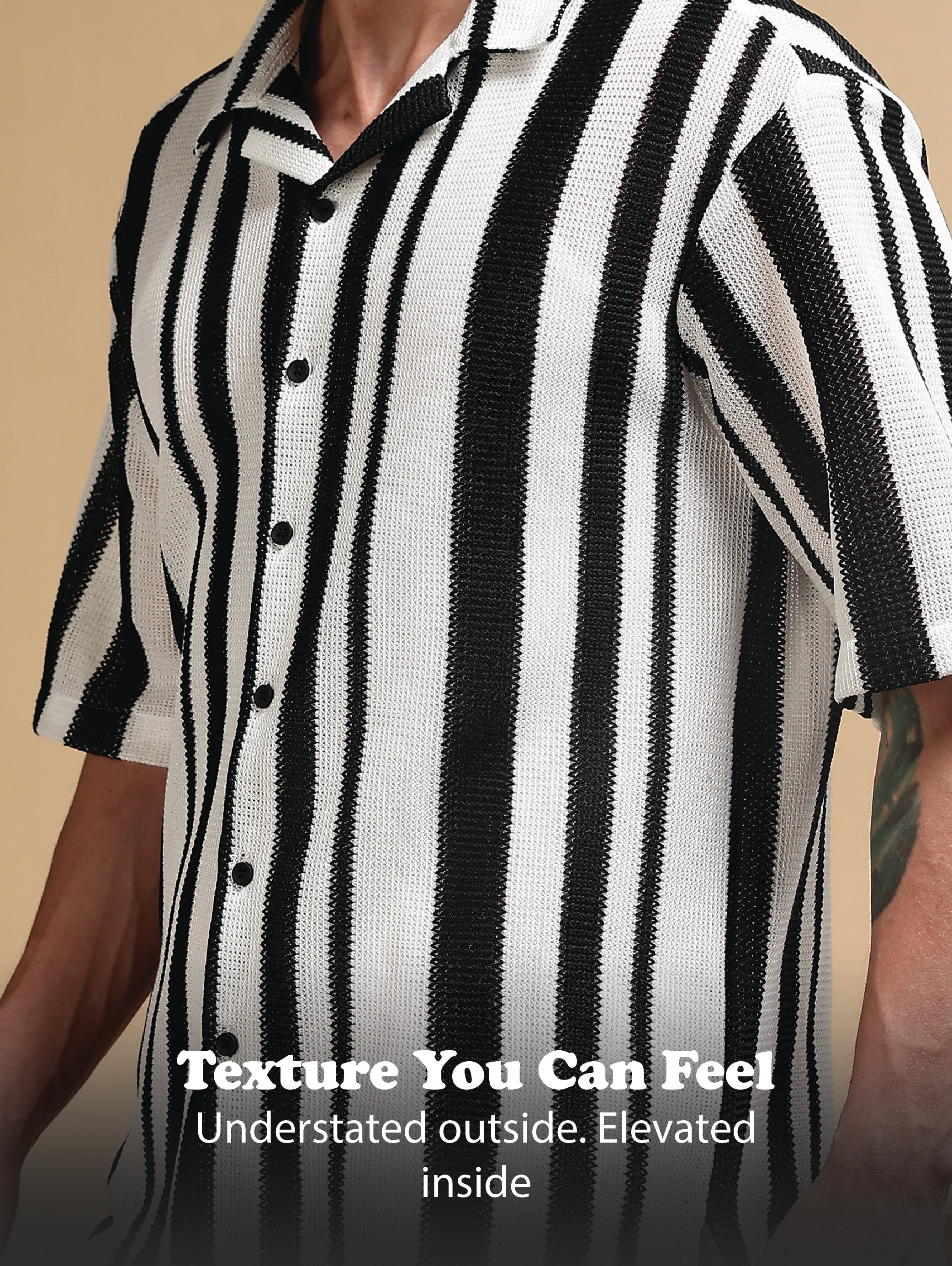Refresh your casual wardrobe with this striped shirt, crafted in a lightweight polyester fabric for breathability and everyday comfort. Designed with a relaxed fit, this half-sleeve shirt drapes effortlessly for an easygoing vibe. The bold vertical stripes add a touch of modern edge, making it a versatile pick for both day outings and evening plans.
