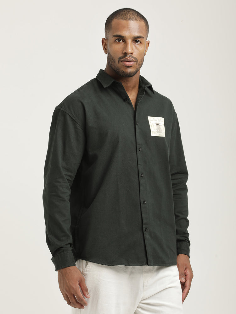Slim Fit Cotton Shirt with Graphic Sticker Dk Green