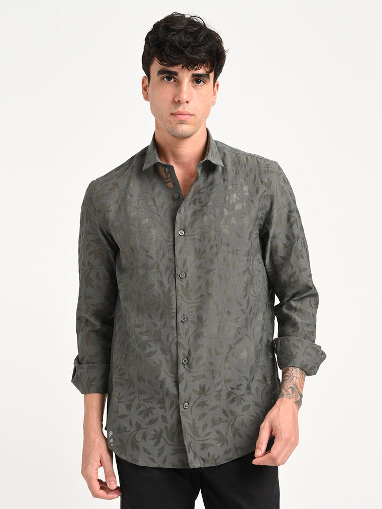 Slim Fit Nylon Burnout Shirt Grey