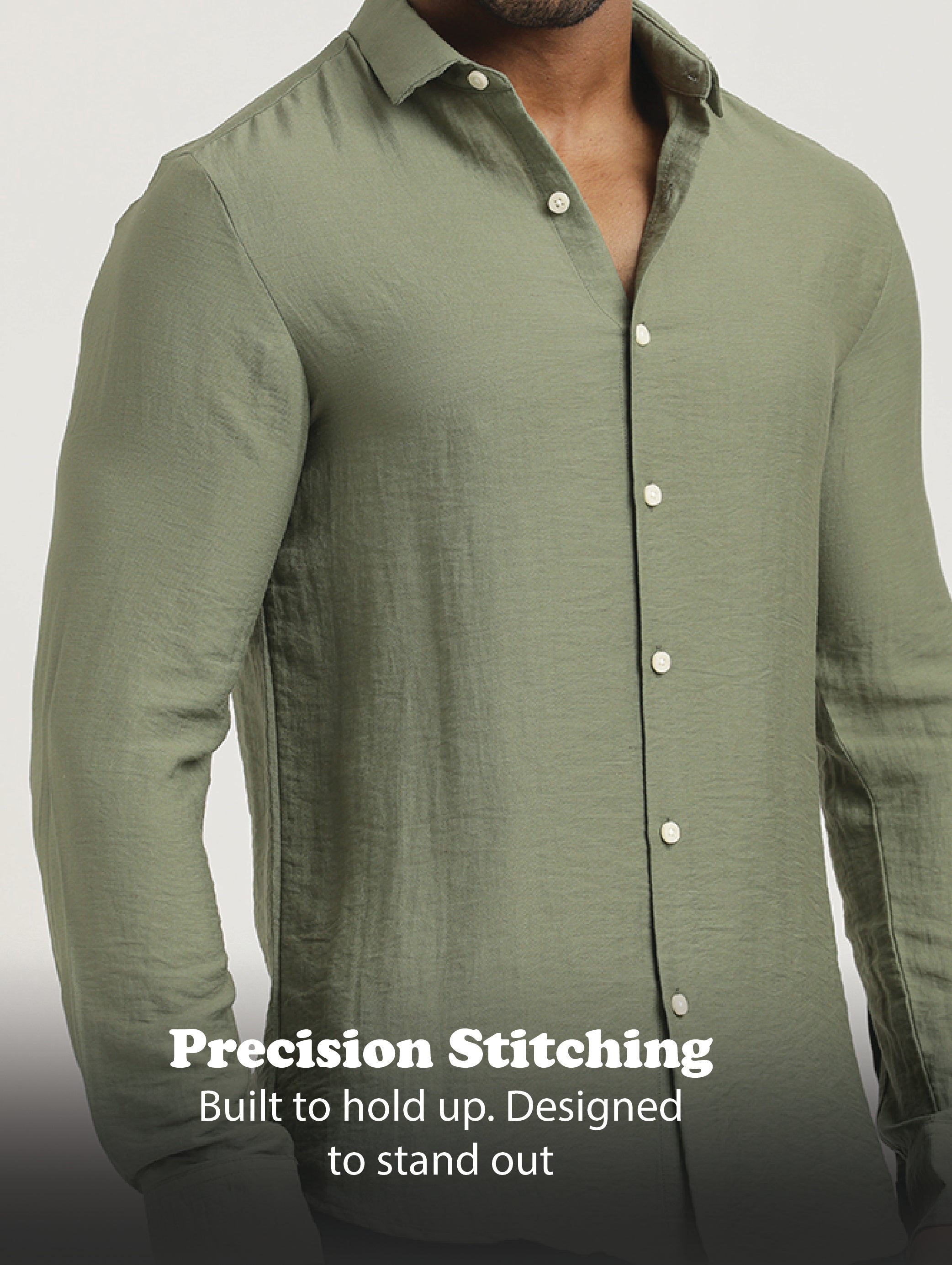 Slim-fit shirt crafted from lightweight nylon with a textured finish that mimics the look and feel of linen. Designed with full sleeves and a clean, pocket-free silhouette for a minimalist, contemporary style. Perfect for casual wear with a refined touch.