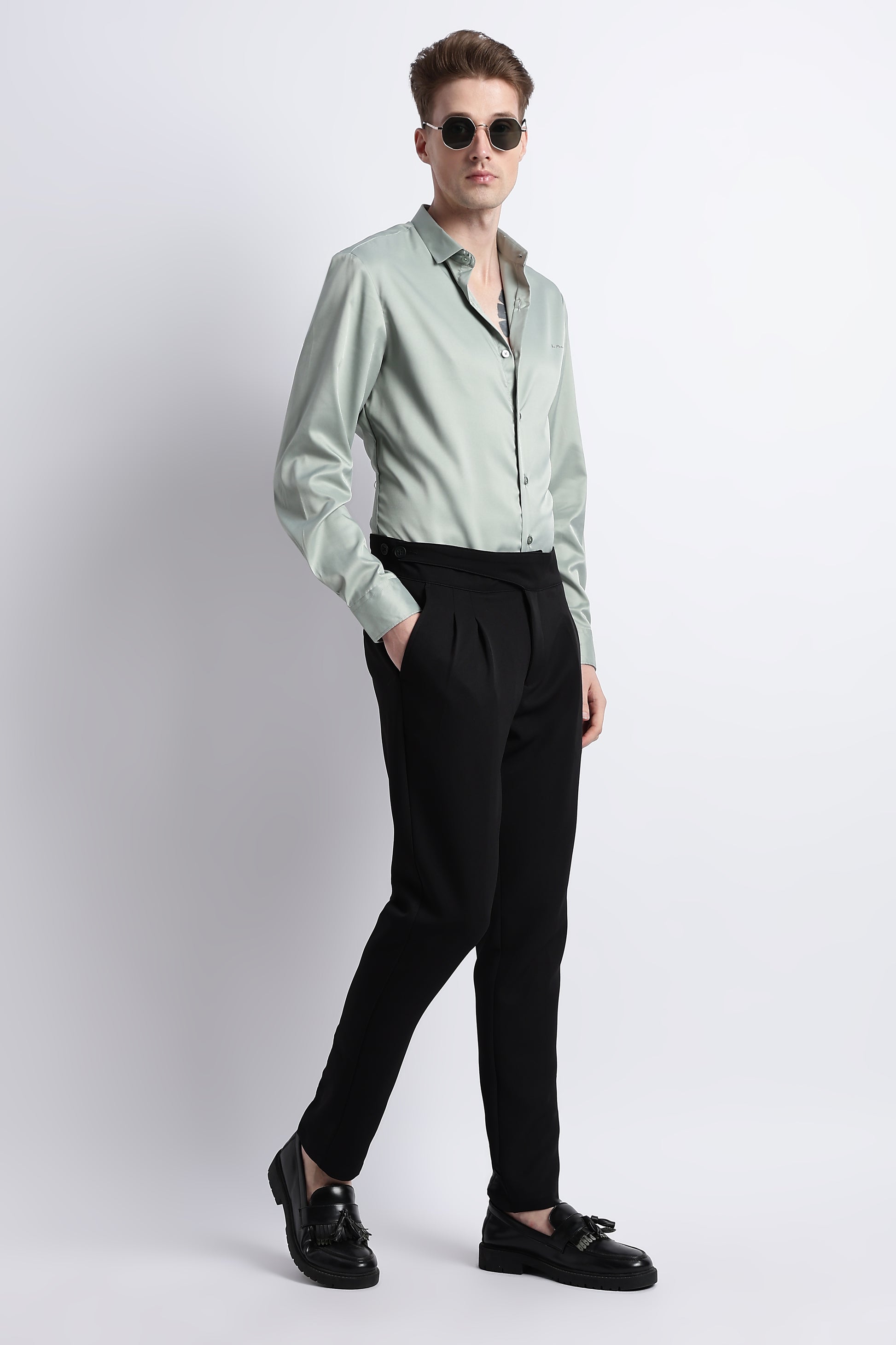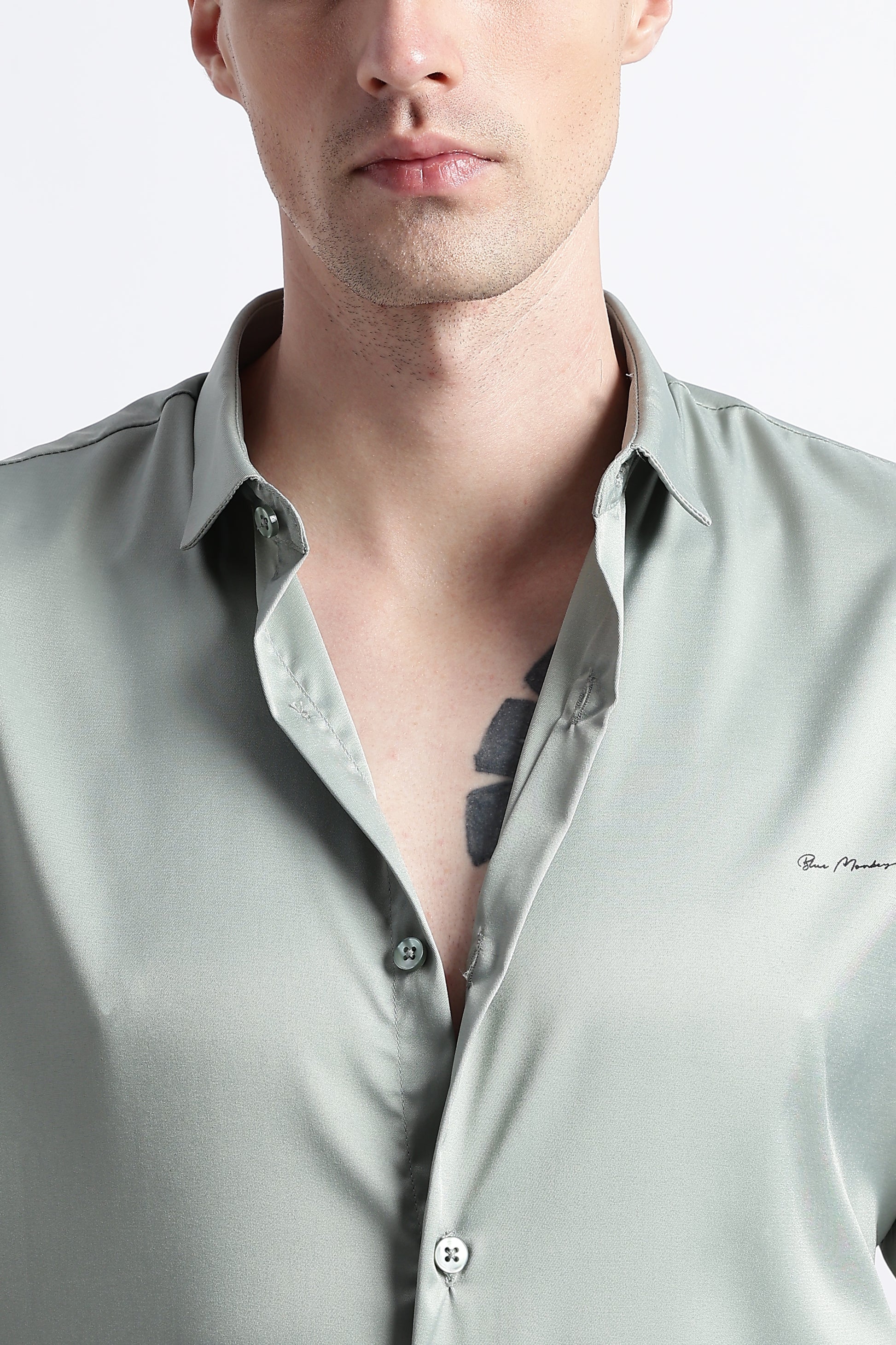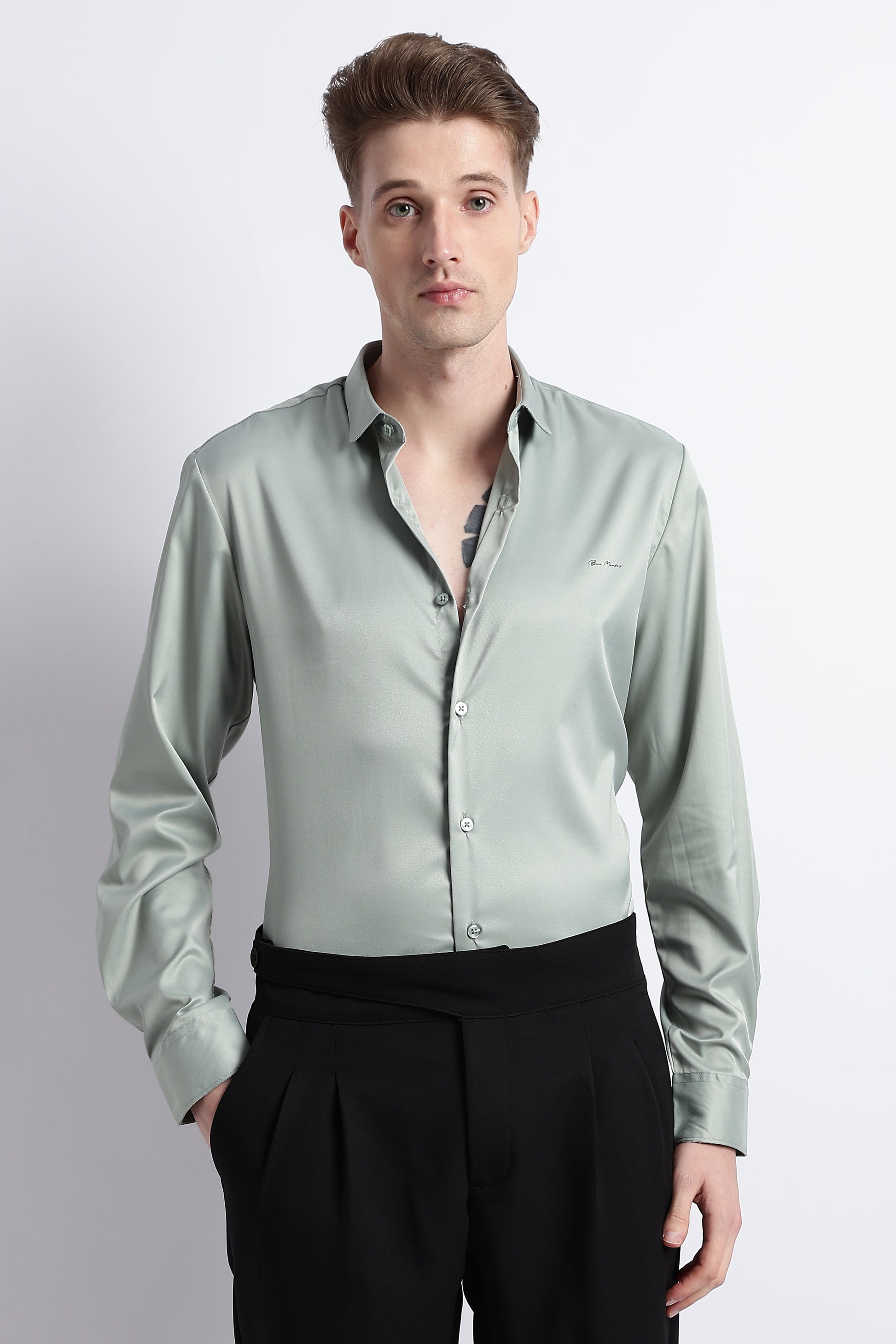 Smooth. Sleek. Subtle. This P green shirt, crafted from soft poly satin, offers a gentle sheen that feels as refined as it looks. Designed in a slim fit with a clean, pocket-free silhouette — it’s a statement of quiet confidence for evenings or effortless dressing.