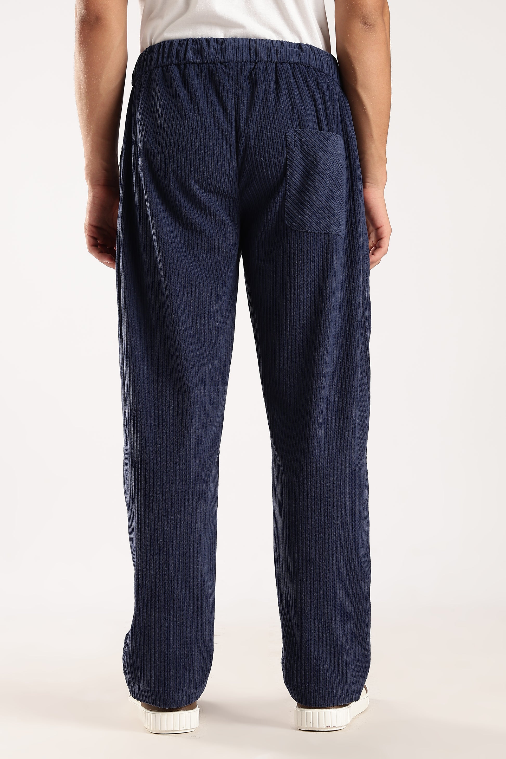 Textured Loose Fit Drawcord Trousers Royal Blue