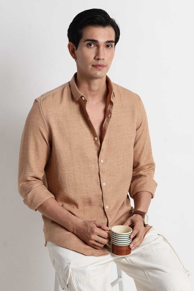 Crafted from a smooth linen blend, this Lt Orange shirt brings together the structure of linen and the comfort of poly — giving you a lightweight, breathable feel with a gently textured finish.