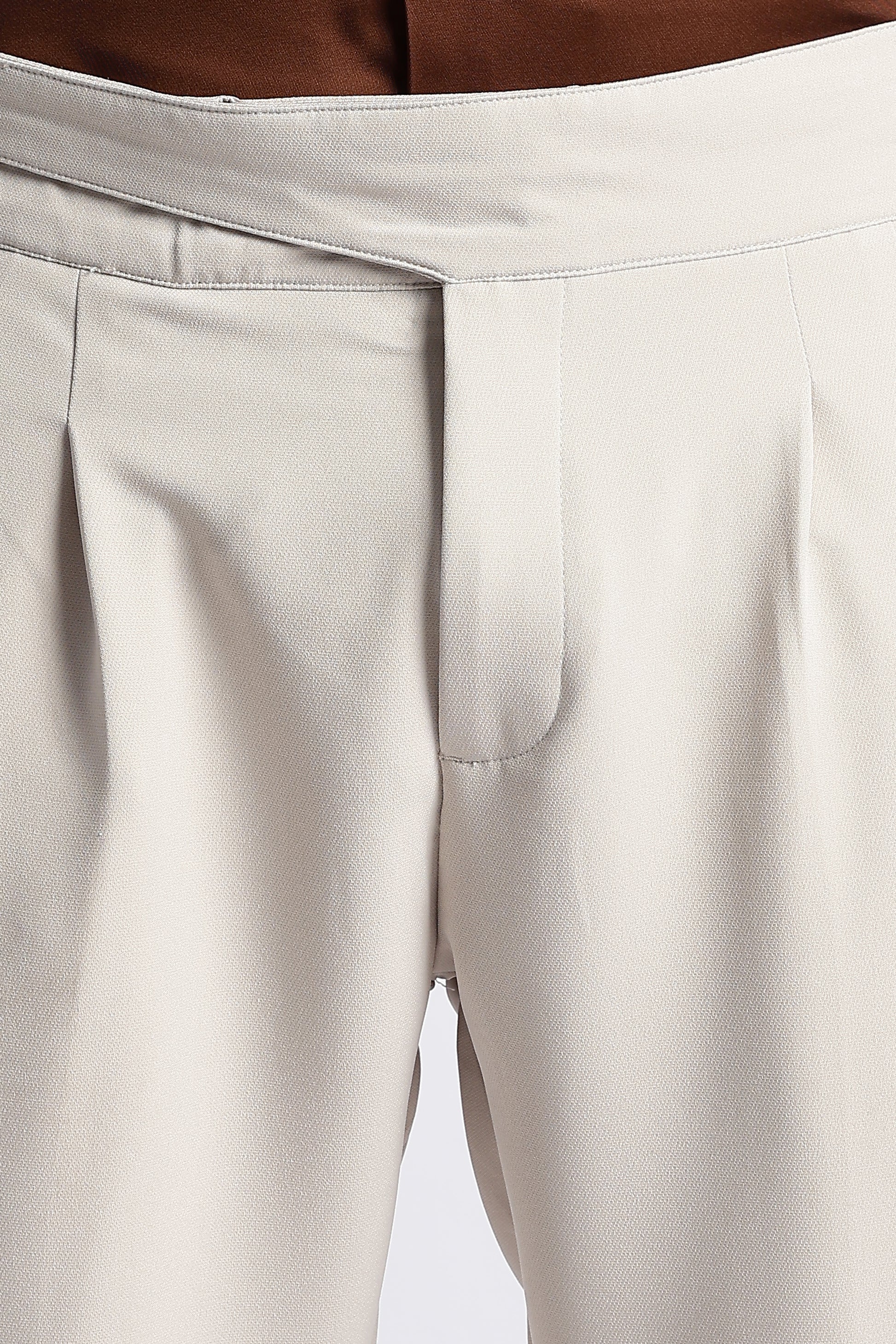 Inspired by timeless military tailoring, these beige Gurkha trousers bring structure and sophistication to casual dressing. Crafted from smooth poly fabric, they hold their shape while offering all-day comfort. The signature high-waist Gurkha closure and pleated front add a touch of old-world charm — redefined for the modern man. Perfect for those who appreciate understated design with a tailored edge.